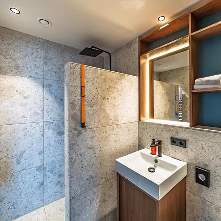 This apartment is equipped with a bathroom that features a hairdryer, bath sheets, and towels. A walk-in shower and a separate toilet can also be found.